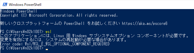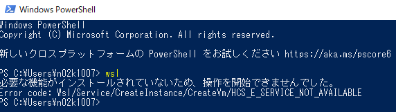PowershellでWSLを実行すると以下のようなエラーが・・