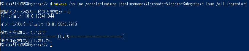 dism.exe /online /enable-feature /featurename:Microsoft-Windows-Subsystem-Linux /all /norestart